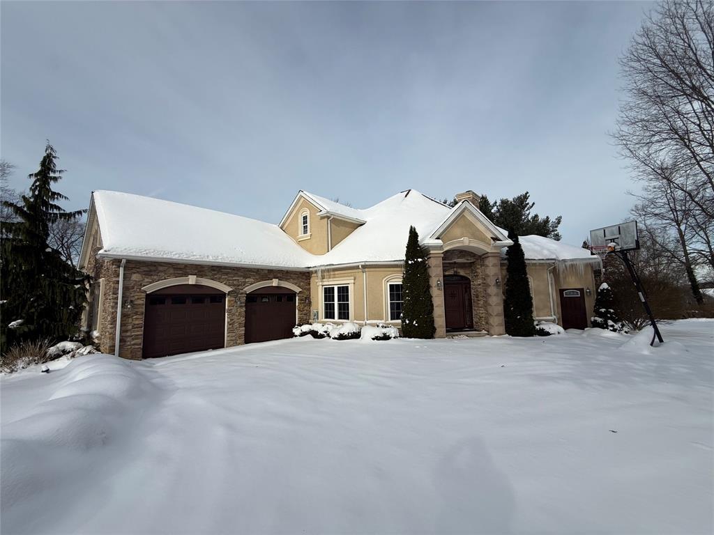 Tucked along a quiet road, this custom-built 4-bedroom, 3-bath home offers over 3,500 square feet of bold design and comfortable living on 1.19 private acres. Rich hardwood floors flow through the main level, highlighted by a marble-wrapped staircase, ambient-lit crown molding, and a cozy fireplace anchoring the living space. The retro-inspired red kitchen makes a statement with stainless steel appliances and custom lighting. The main-floor primary suite is a true retreat with a jacuzzi tub and spacious walk-in closet, while two additional bedrooms share a Jack-and-Jill bath. Upstairs, a massive bonus room with a full bath and ample storage offers endless flexibility. The high-ceiling walk-out basement is ready for your vision—perfect for a theater, guest suite, or in-law space. Enjoy the peaceful backyard from the patio with natural gas hookups, plus an attached two-car garage. Built in 2010, this home is full of character, space, and opportunity.
