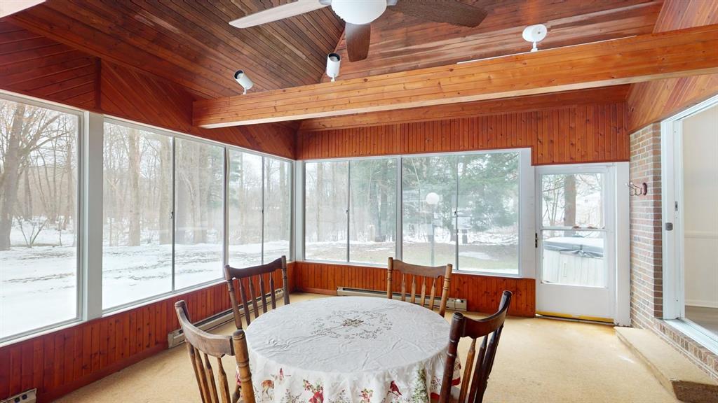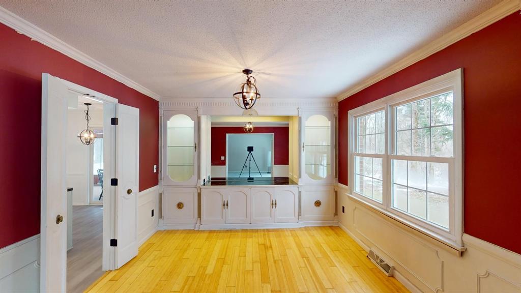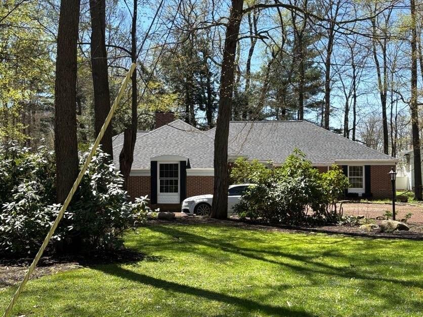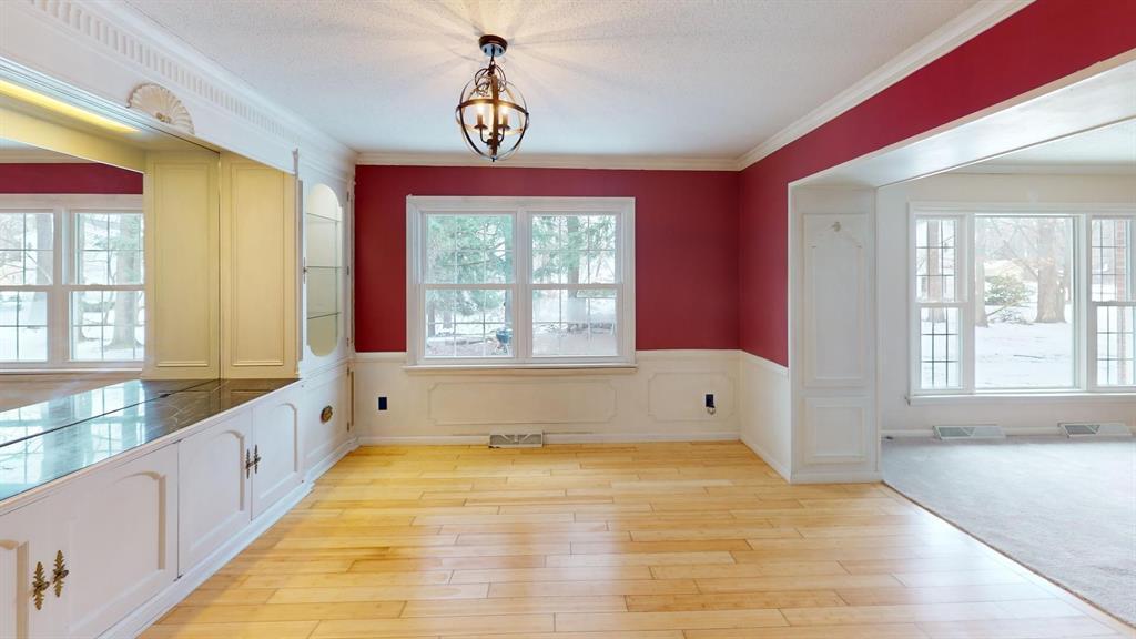 Custom built all brick 3-bedroom, 2.5 bath home situated on a large treed corner lot close to all amenities and schools. Formal living and dining rooms. Eat-in kitchen w/new WOLF elec. cook-top, family room w/gas FRPL. Spacious primary bedroom with en-suite bath. Large enclosed all-seasons room w/electric baseboard heat has architectural ceiling & beams. First floor laundry. Large game room with fireplace and wet bar in basement. Barn doors on bedroom closets. New roof, furnace, Wolf stove-top, oven, electrical outlets and light fixtures, updated electric box to 200 AMP, newer flooring throughout, rebuilt exterior chimney, freshly painted interior, updated garage door and transmitter.