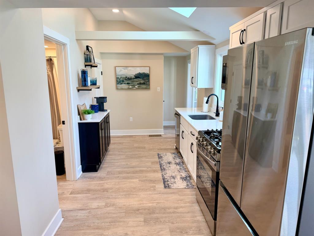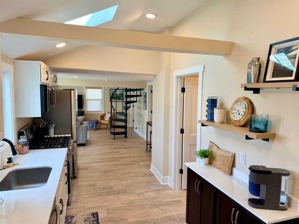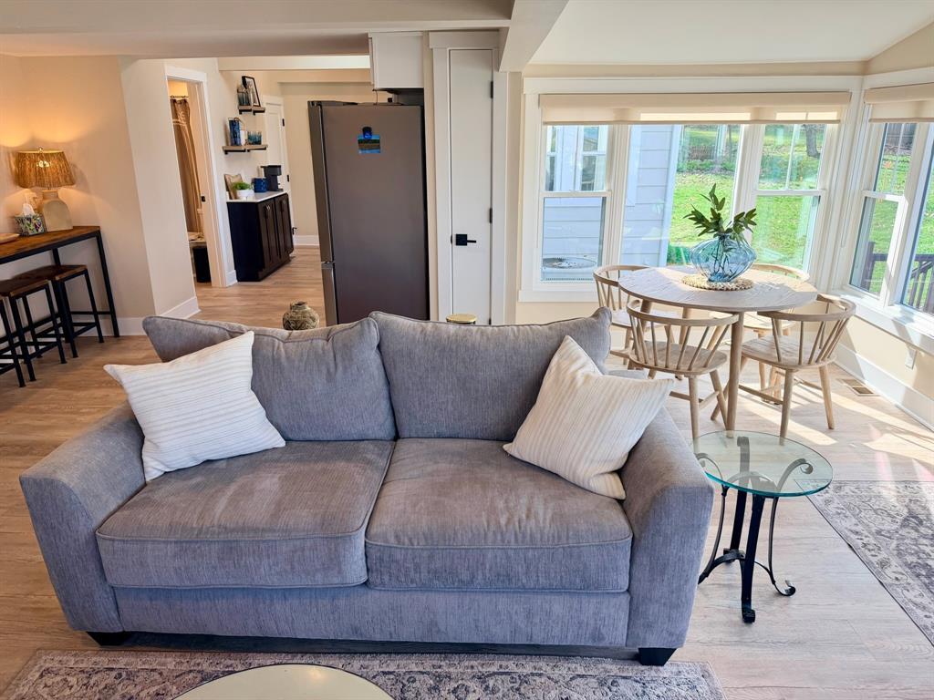 Enjoy breathtaking lake views from this completely updated 2-bedroom, 1-bath home featuring a finished loft for additional sleeping or living space. The open-concept layout creates a bright and inviting main living area, perfect for relaxing or entertaining. The home was stripped to the studs and completely rebuilt in 2024, offering worry-free living with modern finishes throughout. The kitchen features solid surface countertops, stainless steel appliances, and a functional layout ideal for everyday living. Convenient first-floor laundry and central air conditioning add to the home’s comfort and functionality. Step outside onto the large deck just off the living room and take in the beautiful lake views while enjoying the outdoors. Ideally located just around the corner from Pat Crawford Beach and the lakeside community playground, this property offers the perfect combination of comfort, convenience, and lake living.