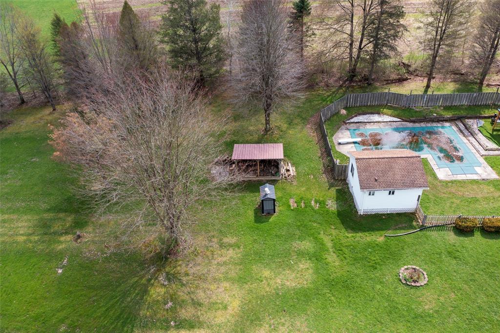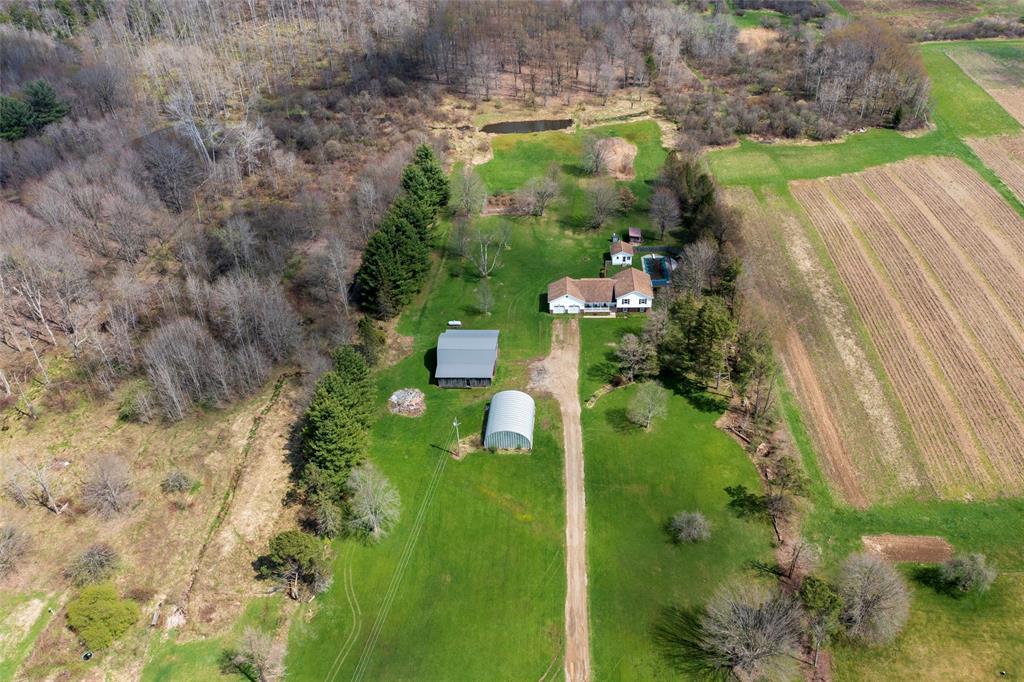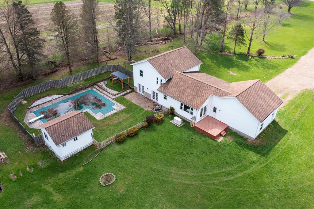 Rare country retreat on 10 acres with room to live, work, and play! This 4-bedroom, 2-full-bath home offers cathedral ceilings in the living and dining areas, a convenient laundry room, updated windows throughout, updated appliances, and a separate poolside entertaining area with kitchenette and sliding doors to the inground pool. Outside you’ll find a barn with a new metal roof, Quonset building, pond, fruit trees, blueberry bushes, wooded acreage with tree stands, and plenty of space to explore. Enjoy hot water heat plus an outdoor wood furnace with ample wood supply. Additional features include new electric service, generator, security system, and seller providing a full tank of propane. HSA Home Warranty included. A one-of-a-kind property with endless possibilities!