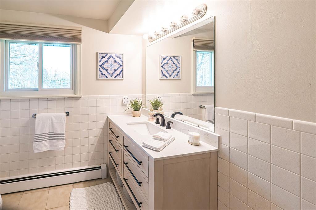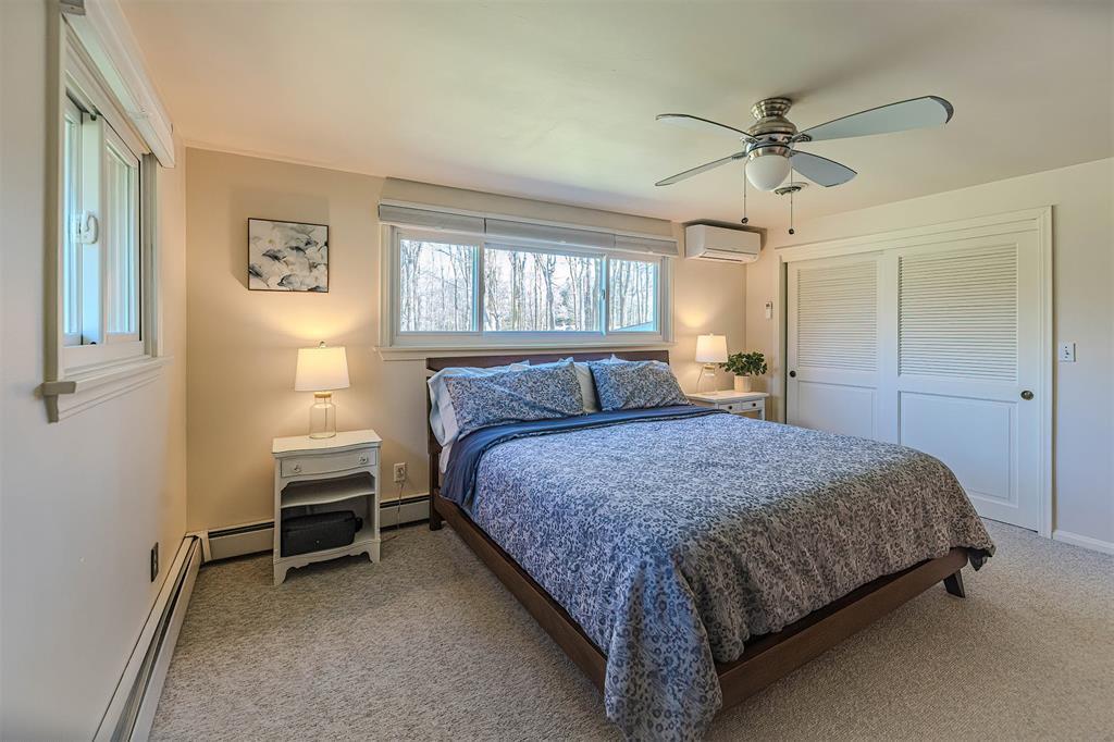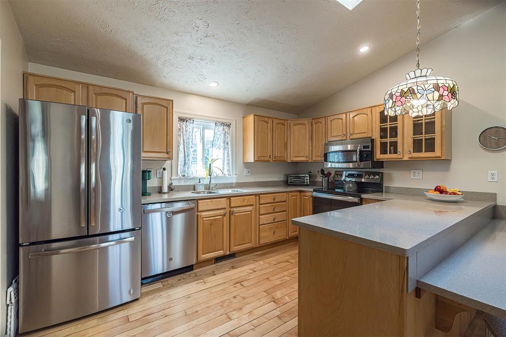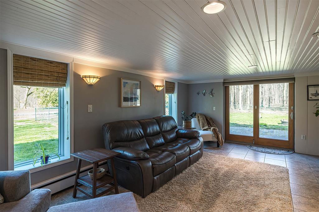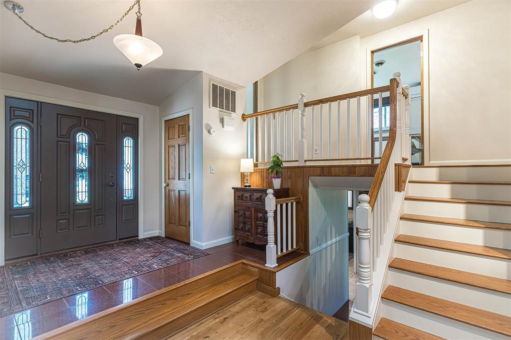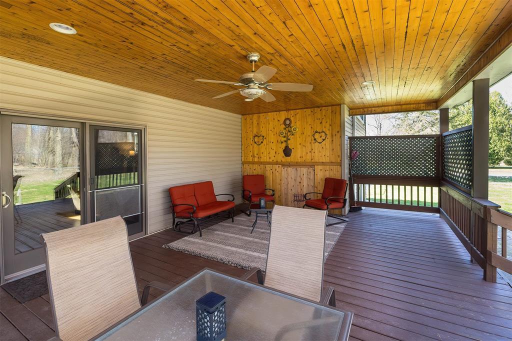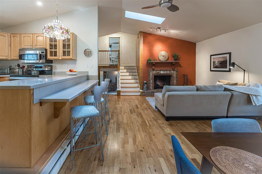 YOU'LL LOVE THIS HOME AND IT'S GREAT LOCATION. IT'S SITUATED ON A PRIVATE ROAD AND HAS WONDERFUL WOODED VIEWS FROM MANY WINDOWS. DRAMATIC VAULTED CEILING WITH ITS MANY SKYLIGHTS MAKES THIS HOME SO WARM AND INVITING. THERE ARE 2 STUNNING WB FIREPLACES W/ CUSTOM ELECTRIC (FERRIER'S) INSERTS. DELIGHTFUL MAPLE KITCHEN W/ SOFT CLOSE CABINETRY, WITH AN INVITING BREAKFAST BAR W/ STOOLS. THE SOLID HARDWOOD FLOORS ALSO ADD A SPECIAL TOUCH. THE BEDROOMS ALL HAVE LARGE CLOSETS. OVERSIZED BRAND NEW ANDERSON WINDOWS AND CUSTOM BLINDS THRU OUT. DOWNSTAIRS YOU'LL LOVE THE FAMILY ROOM W/ BRICK DETAILS, BUILTIN BOOKCASES AND THE WALK OUT DOORS TO YOUR PRIVATE YARD.