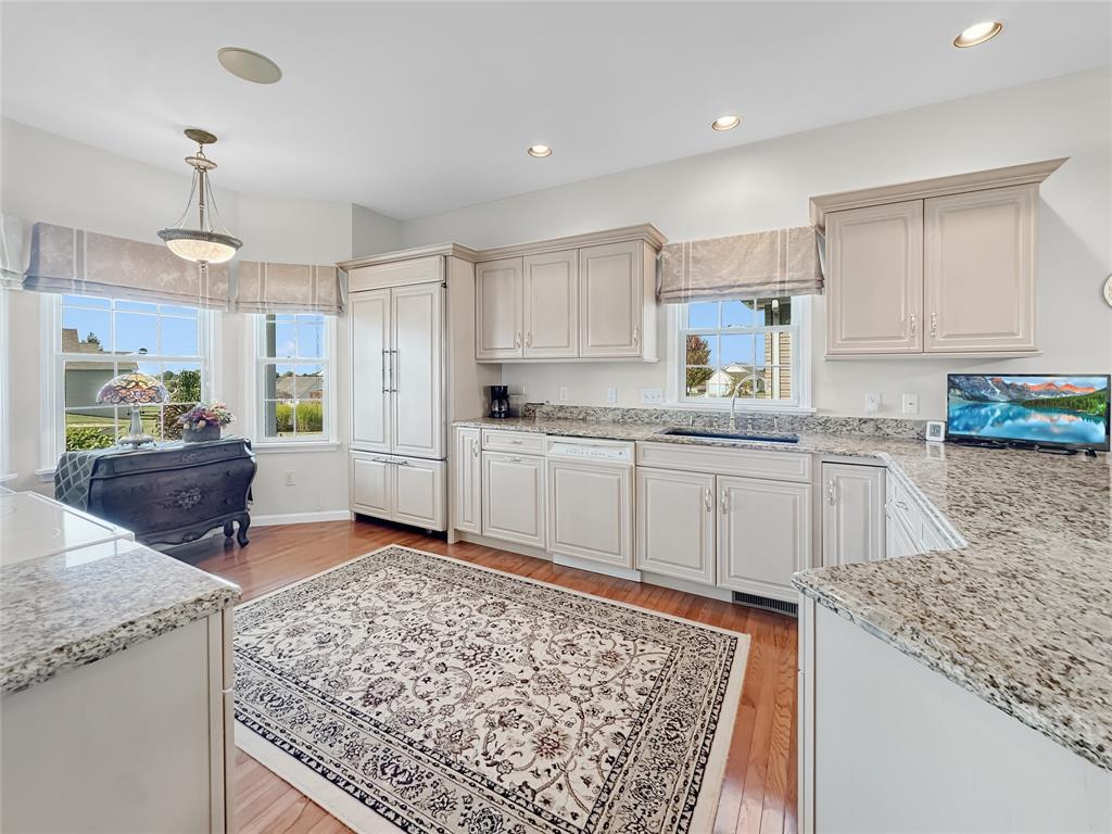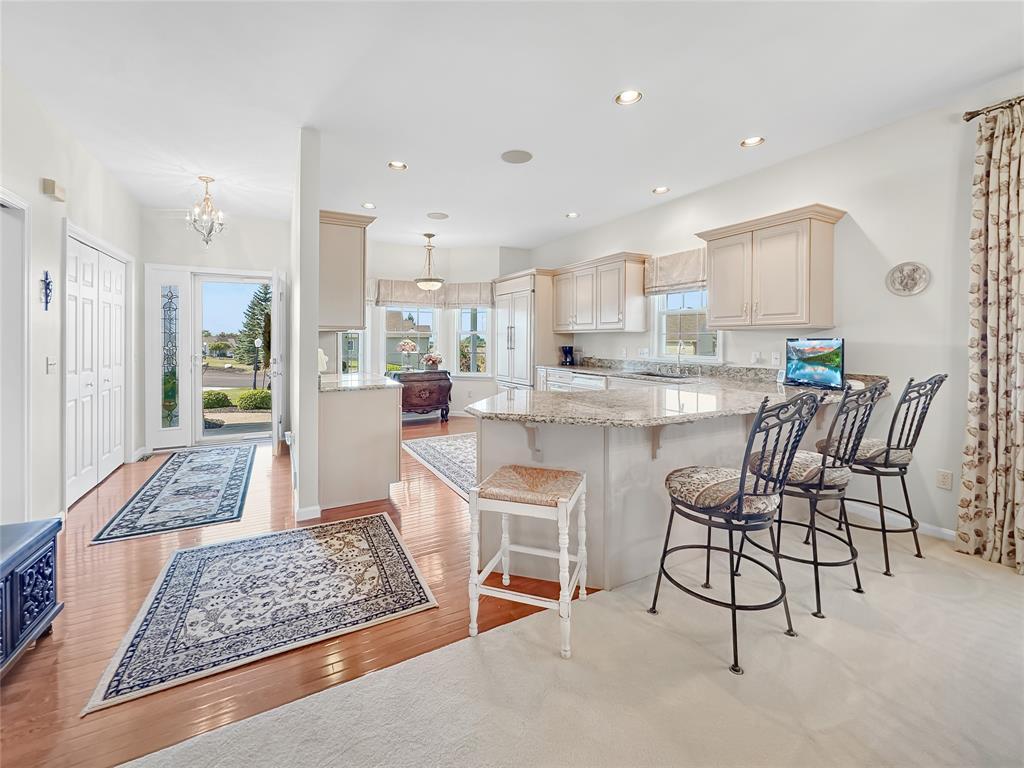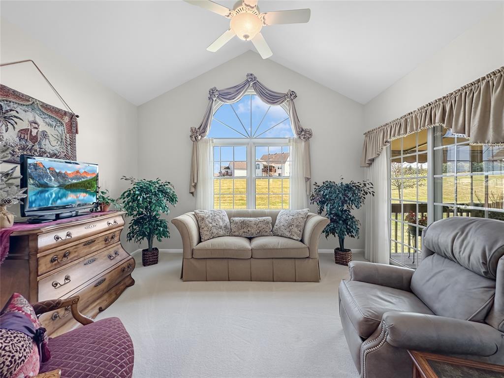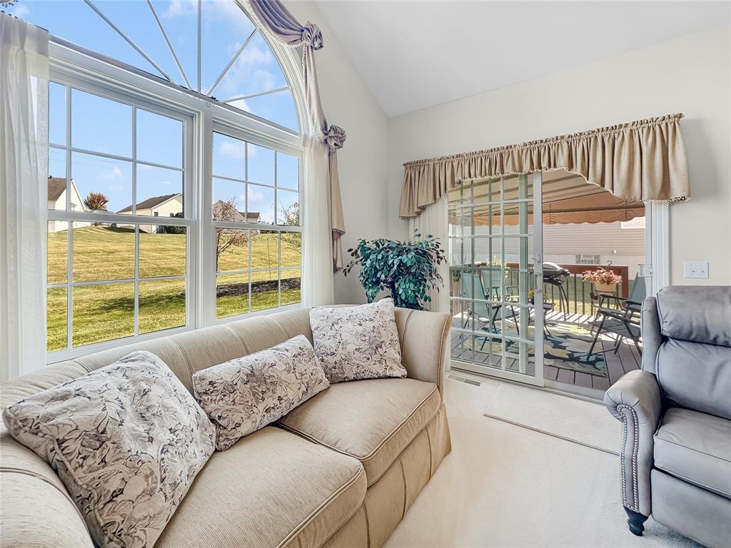 Custom built, one owner condo with $35,000+ in upgrades. Immaculate condition! Insulation foam investment brought the utility bills down. Upgraded windows. Whole house speaker system. Kitchen features beautiful upgraded cabinetry, granite countertops, upgraded appliances and fixtures. Cathedral ceiling sunroom with sliding doors to the deck with awning. Enjoy the Jacuzzi tub in the primary bathroom and lower the blinds with ease with a remote. Walls finished in basement and garage. Nicely situated in the neighborhood with a nice view.