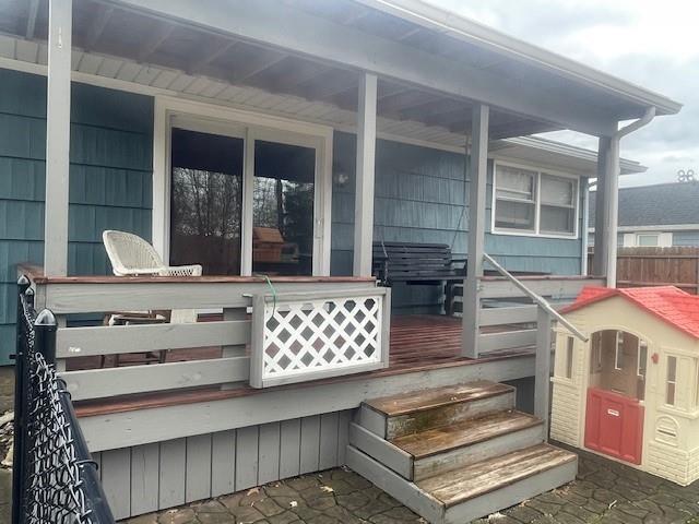 Great location for the annual mile-long yard sale! The covered front porch leads to a large living room with a gas fireplace and lots of light. Plus built-ins and cove ceiling for added charm. The hallway leads to 3 bedrooms with hardwood floors and good-sized closets. 2nd bedroom has sliding glass to a covered deck and a fenced yard. There's even a screened-in porch next to the detached garage. It's such a great house, it's time to make it yours!