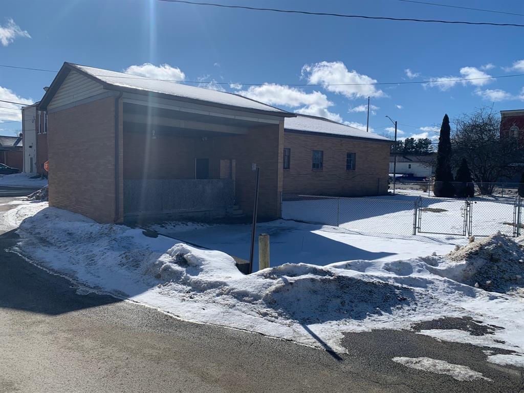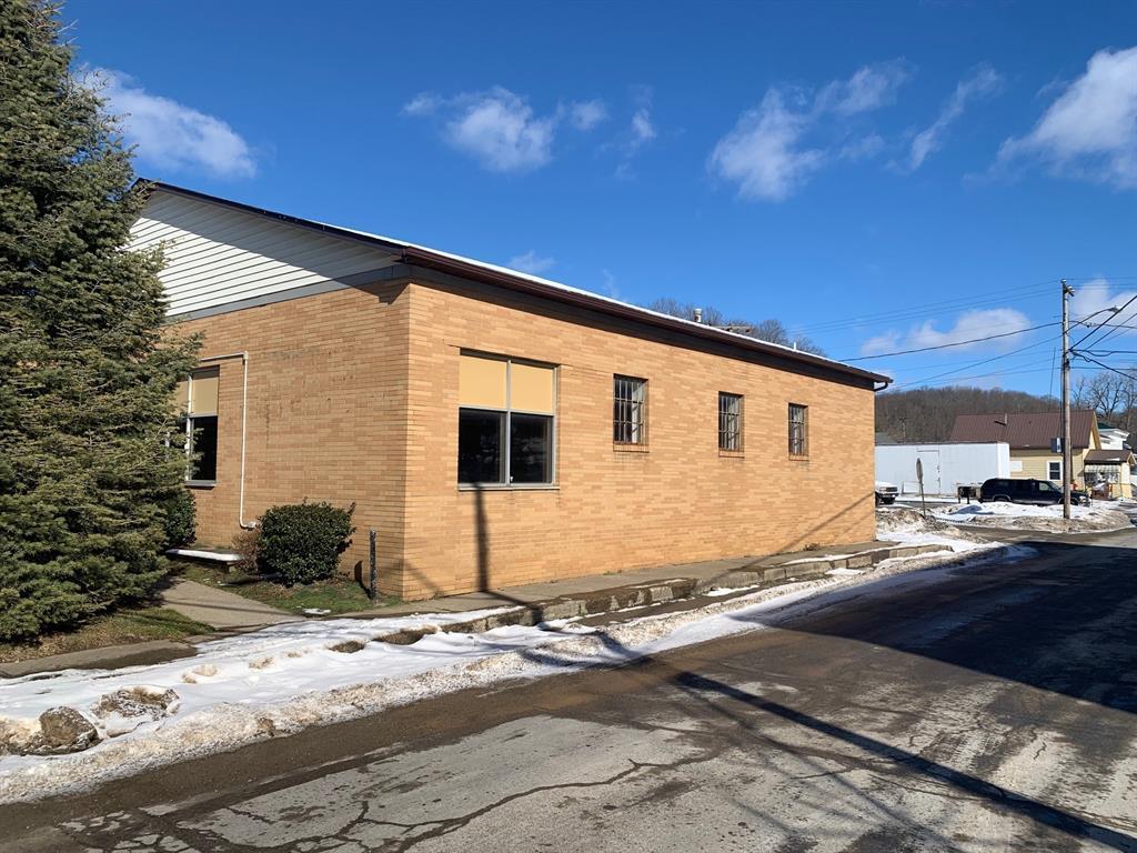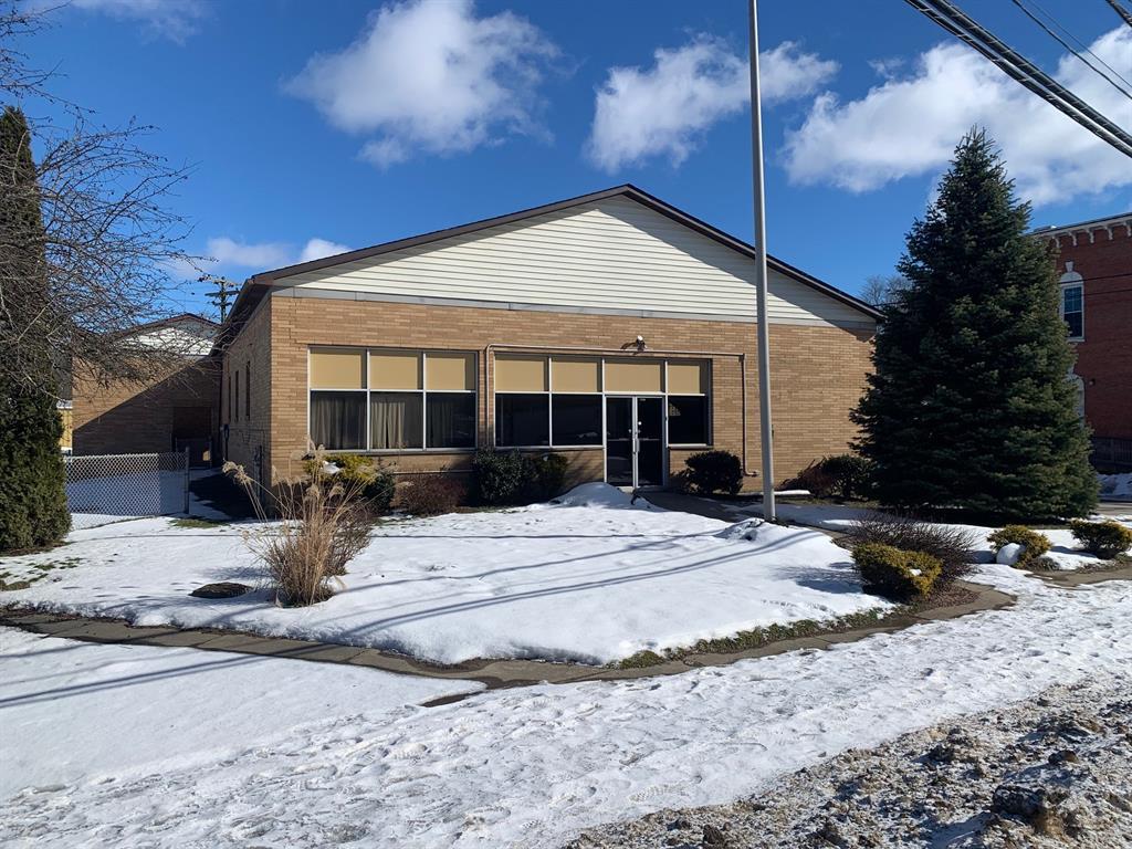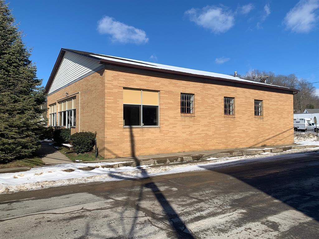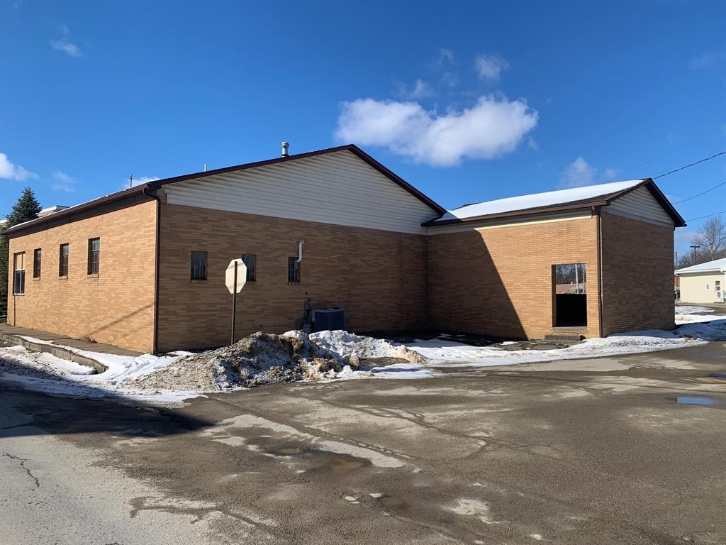 Solid brick building in the heart of Conneautville with dual restrooms, full kitchen, loading dock, central air, and fenced yard. 3 lots included. Visibility in Conneautville can't get any better. Roof and AC relatively new. Would make a great office or retail space.