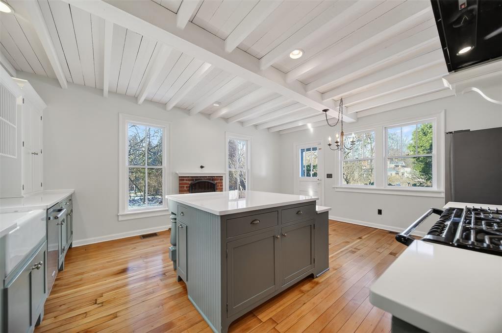 Experience the perfect blend of 1916 character and modern luxury in this 4-bed, 3.5-bath Colonial. Set on nearly an acre in the premier Wolf Rd. neighborhood, this home radiates elegance with beautiful hardwood floors and four fireplaces designed for cozy nights and grand entertaining. The heart of the home is a chef’s dream: a charming eat-in kitchen featuring a stunning cast-iron AGA multi-oven range that steals the show. New quartz countertops, a farmhouse sink, and a wood fireplace are added bonuses. The layout flows effortlessly from the sun-drenched den through the family room to a covered back deck, while a second deck off the kitchen overlooks the lush gardens and an expansive backyard. Retreat to the master suite, where vaulted ceilings, a private fireplace, and a walk-through closet lead to a luxurious en suite bath. Complete with a detached 2-car garage and manicured landscaping, this is a rare opportunity to own a piece of local history. Wolf Rd. awaits its next residents!