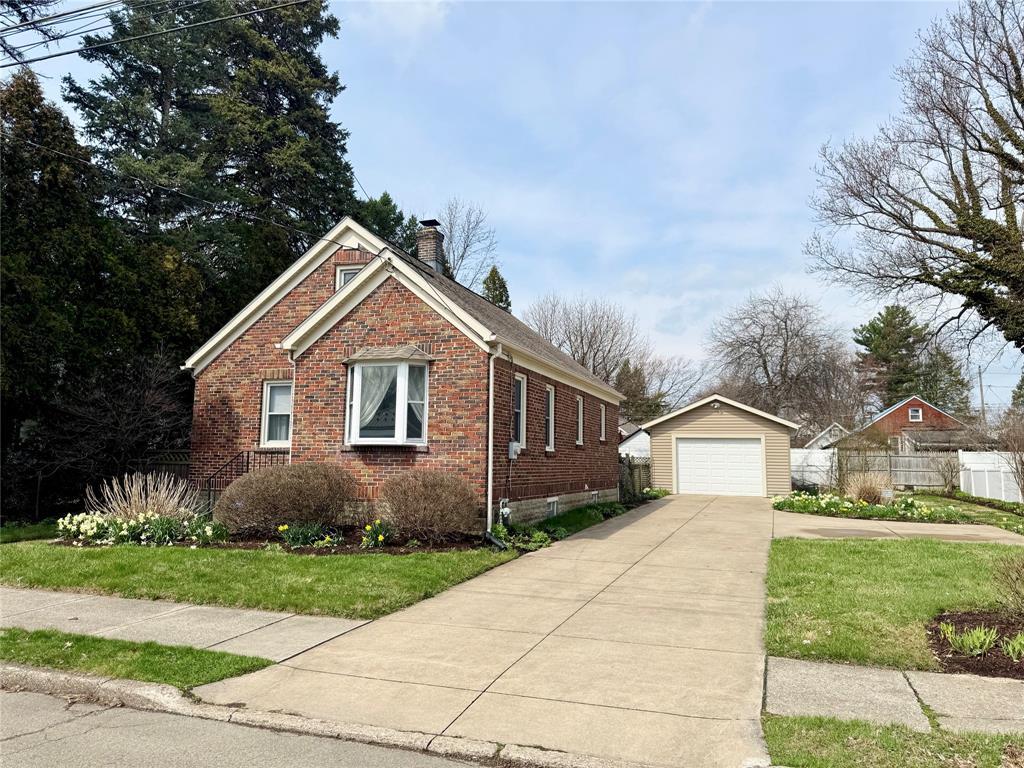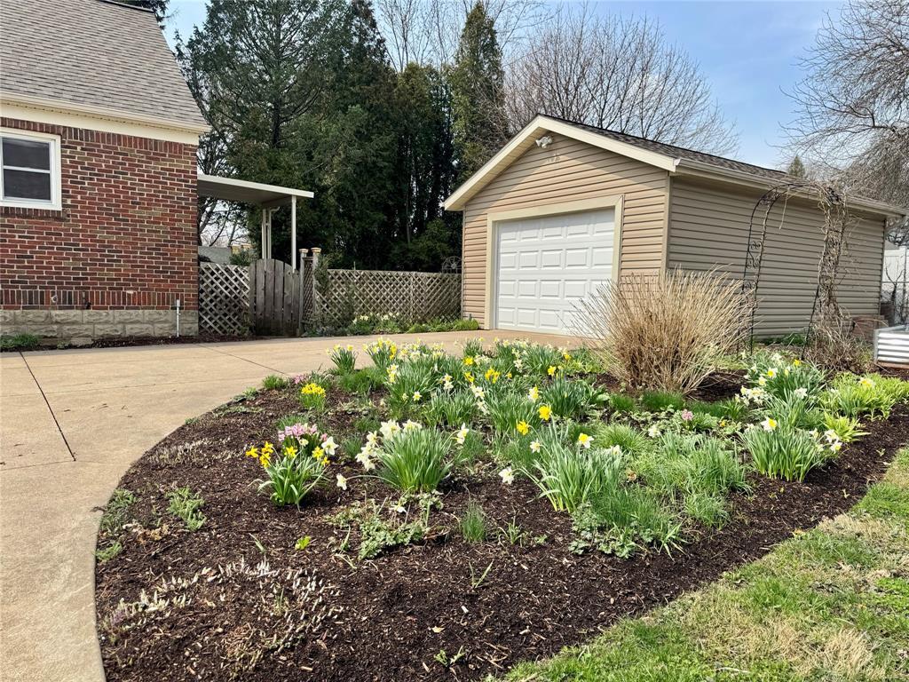 Tucked away on a tree-lined street, this enchanting brick home offers a rare blend of timeless character and thoughtful updates. As the seasons begin to turn, the property comes alive with hundreds of established perennials, creating a vibrant, ever-changing landscape that feels straight out of a storybook. Set on a spacious double lot, the home boasts a large, newly paved driveway leading to a recently constructed garage. The fully fenced yard provides a private retreat ideal for pets, play, or peaceful afternoons. Inside, you’ll find rich hardwood floors throughout, adding warmth and elegance to every room. The oak kitchen is a true standout, featuring solid cabinetry that has been beautifully maintained, blending classic craftsmanship with function. The first floor bath has been beautifully tiled offering a refined, natural aesthetic. This is a home that balances charm, cheerfulness, and quiet sophistication—ready to welcome its next chapter. Reverse osmosis water system.