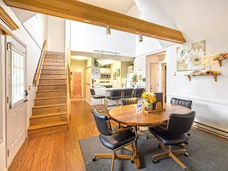 Nestled privately against the wooded hillside, this 1 bed plus loft and three full baths is ready for its new owners! Whether an investment property, full time residence or simply a place to call your own retreat, 4483 does not disappoint. Located in Camelot with an onsite Property Manager, meticulous grounds, and an enclosed pavilion for owner’s use. A quick walk to Chair 8, Sugar Shack, zipline, pool, spa and all the activities PeeknPeak has to offer with its convenient location. HOA includes exterior maintenance, snow and trash removal, cable and internet. Currently rented through Airbnb and VRBO with impressive rental income. A few updates include new H20 tank, new fireplace, a new stove with more potential to make this your own. condo sells furnished.