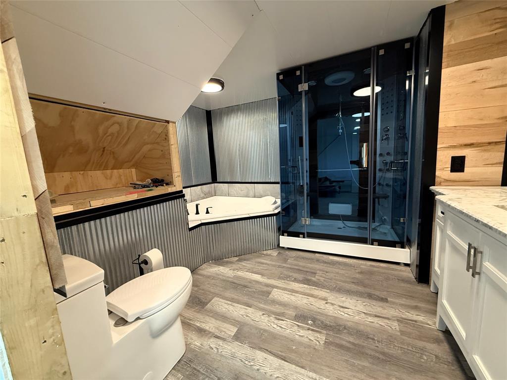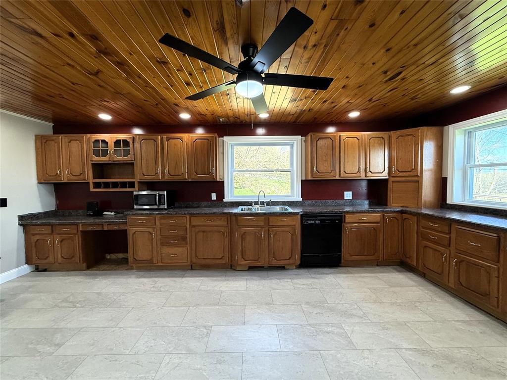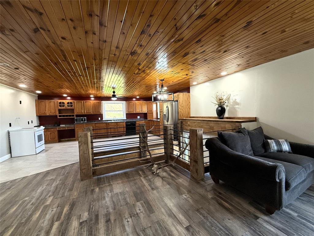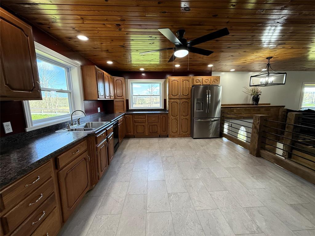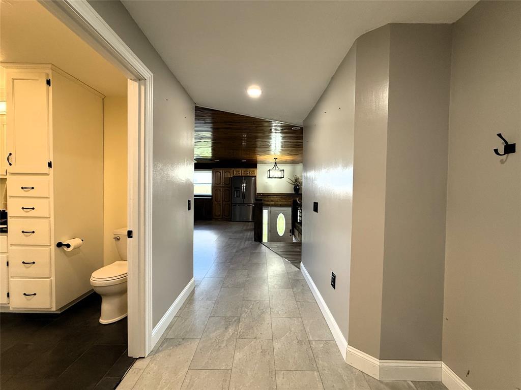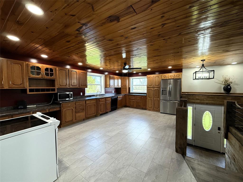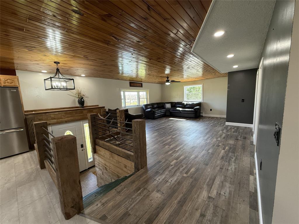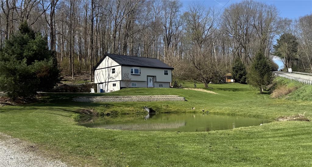 Come put the finishing touches on this freshly remodeled home offering 2 levels of living! Situated on a truly picturesque 1.25 acres, this home offers privacy, room for outdoor recreation, and a large patio for entertaining. Stocked pond for those who enjoy fishing! Open concept living space between the kitchen and living room with stunning hardwood ceilings, new vinyl flooring, and new kitchen appliances. Two bedrooms upstairs and a full bathroom with granite countertops plus laundry room. Primary suite on the lower level with another full bathroom featuring a sitting tub and steam shower. Finish the lower level family room to your taste! Updates include brand new roof, siding, custom cabinets, lighting, drywall & insulation, plumbing, electrical, doors, windows, paint, and much more. Home is priced accordingly and being sold as-is.