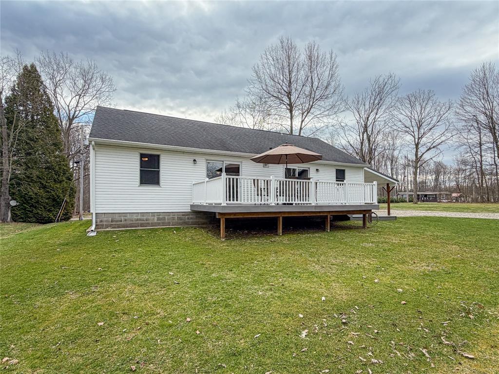 Experience the ultimate lake area lifestyle w/this newer, move-in ready home near Pymatuning Reservoir. Situated on 4 expansive lots totaling +/- 0.7 acres on a quiet street off Leach Rd, this property is <1 mile from Orchard Boat Launch. It even comes fully furnished, making your transition to lake life seamless! The immaculate interior features a fresh, neutral palette & a striking vaulted wood ceiling that highlights the airy, open family room. Three generous bedrooms & full bath offer ample comfort, while a versatile bonus loft is ready for your customization. Outside, relax on the deep covered front porch, the rear composite deck or the covered side porch, perfect for grilling! A separate fire pit area invites cozy evenings under the stars. For the outdoor enthusiast, the oversized 32x36 pole building w/ full electric, cement floors & 10' overhead doors provides premier storage for boats & lake toys. Whether you seek a permanent residence or turn-key getaway, this is a find!