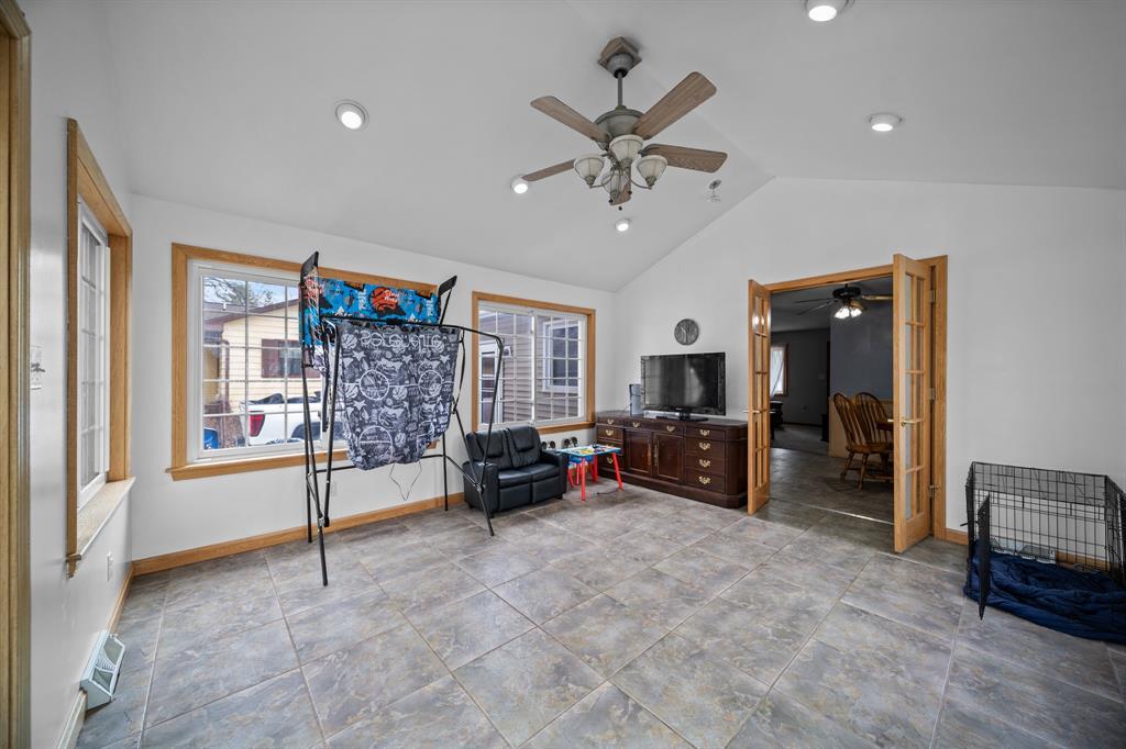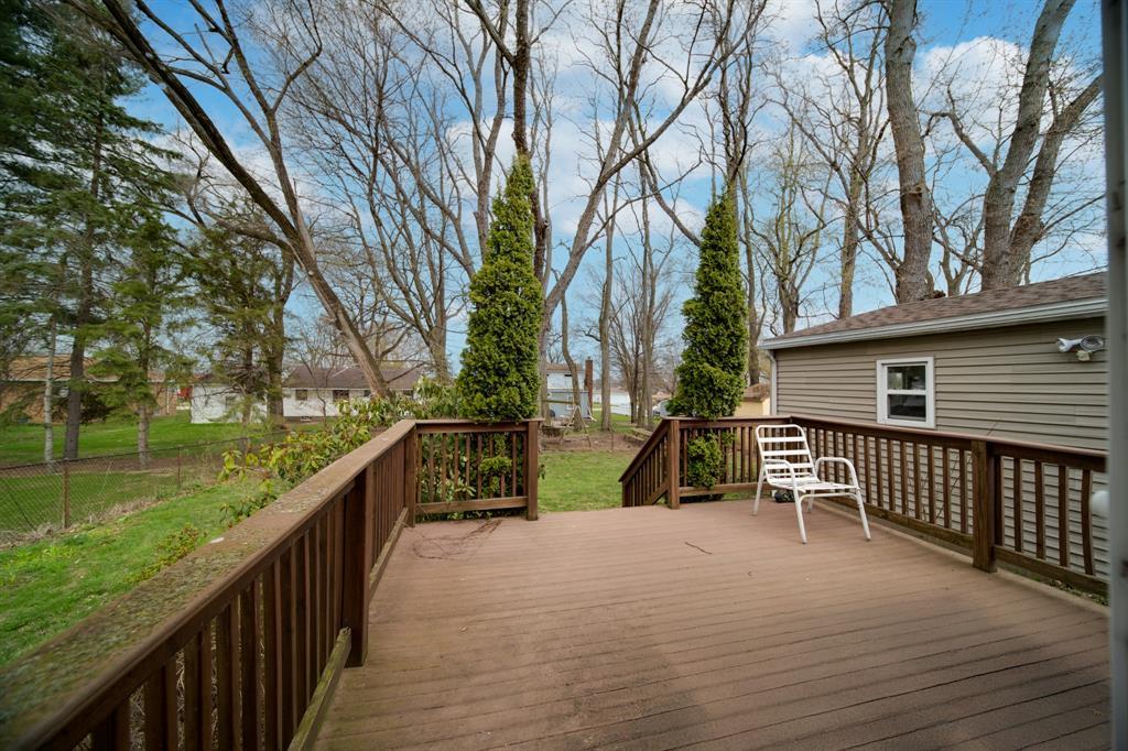 one floor living with a beautiful sunroom off the white cabinet eat in kitchen with hardwood floors in the bedrooms. A fenced in backyard with a great back deck and bar room in the basement perfect for entertaining. 1.5 car garage in Iroquois school district makes this a must see home.